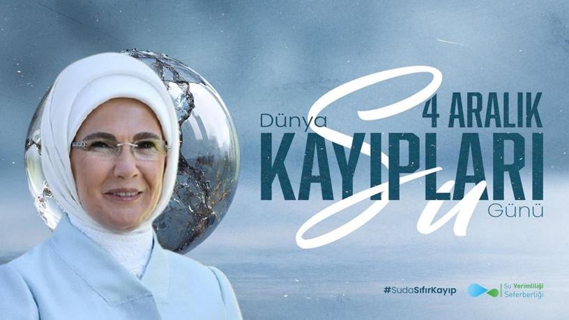 Emine Erdoğan, 4 Aralık Dünya Su Kayıpları Günü'nün suyun akıp giden bir nimet değil, korunması gereken bir emanet olduğunu hatırlattığını belirtti.