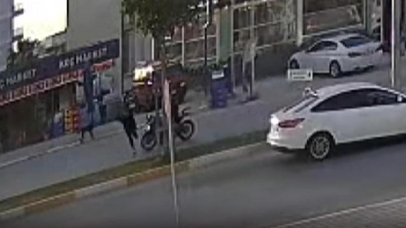 Antalya'nın Serik ilçesinde sahipsiz köpekten korkarak yola fırlayan 10 yaşındaki çocuğa motosiklet çarptı. Kazada çocuk ve motosiklet sürücüsü yaralandı. O anlar güvenlik kamerasına yansıdı.
