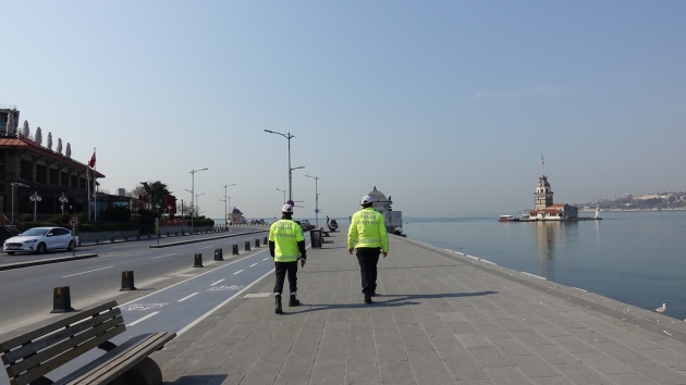 İçişleri Bakanlığınca, 30 büyükşehir ile Zonguldak'ta, il sınırları içinde 2 gün sokağa çıkma yasağı getirilmesinin ardından, Üsküdar Salacak sahiline sessizlik hakim olurken polis ekipleri bölgede önlem aldı.