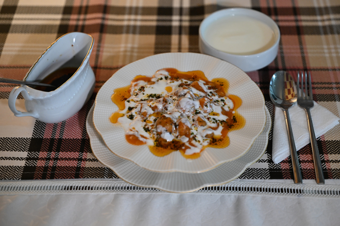 Sos için 2-3 kaşık yağ, isteğe göre karabiber, kırmızıbiber ve naneyle cezvede eritilir.