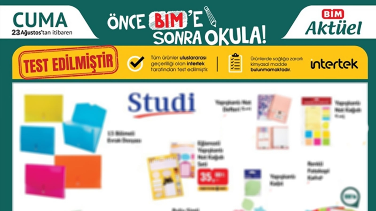 BİM 23 Ağustos 2024 aktüel ürünler kataloğunda öğrenciler için ihtiyaç olacak kırtasiye ürünleri uygun fiyattan satışa sunulacak.