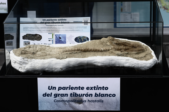 Köpekbalığının yanı sıra bir timsahın (Piscogavialis) ve bir megalodon fosilleşmiş dişi de dahil olmak üzere çeşitli örnekler de sergilenenler arasında yer alıyor.
