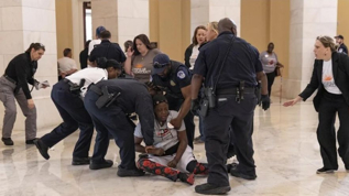 Duruma hakim olmaya çalışan polis, göstericileri zorla Kongre binasından çıkardı.