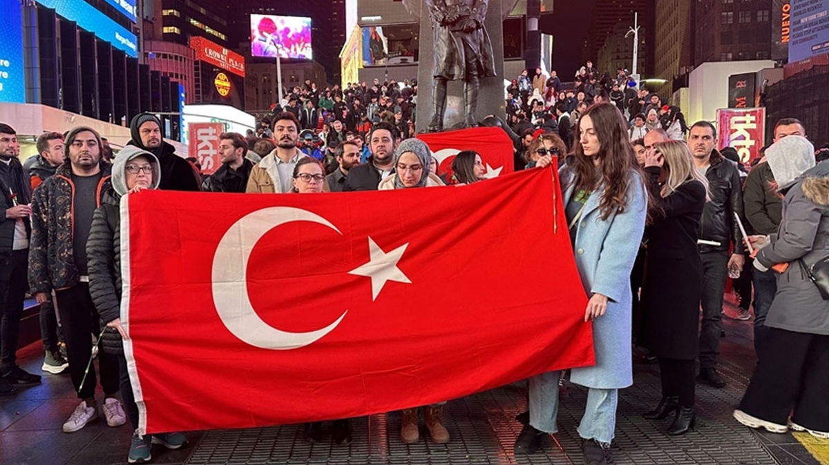 Times Meydanı'nın sembollerinden George M. Cohan heykelinin önünde bir araya gelen Türkler, hayatını kaybedenler için mumlar yaktı ve Türk bayraklarıyla donattıkları alana karanfiller bıraktı.