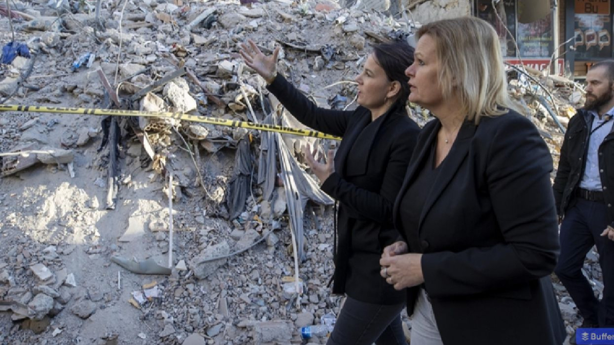 Almanya Dışişleri Bakanı Annalena Baerbock ile İçişleri Bakanı Nancy Faeser, "asrın felaketi" olarak nitelendirilen depremlerin merkez üssü Kahramanmaraş'ın Pazarcık ilçesinde incelemelerde bulundu.