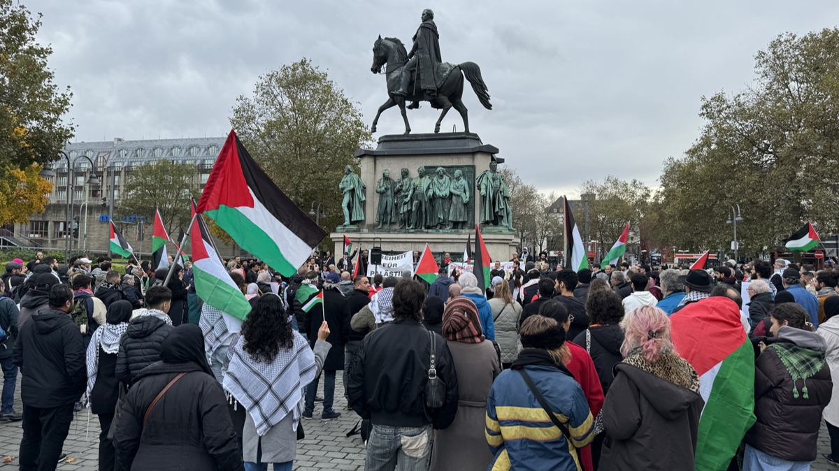 Almanya'nın Köln kentinde Filistin halkıyla dayanışma amacıyla düzenlenen protestoya yüzlerce kişi katıldı.