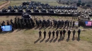 Eğitim tatbikatının yer aldığı görüntülerde ise tank ve zırhlı araçlar göze çarpıyor.