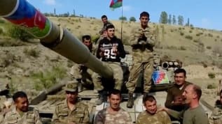 Azerbaycan, Ermenistan işgali altındaki toprakları kurtarmak için başlattığı operasyonları sürdürürken, Ermenistan askerlerinin kaçarken bıraktığı tank ve teçhizatlara Azerbaycan askerleri tarafından el konuluyor. Azerbaycan askerleri, dün kurtardıkları bölgede bulunan Ermenistan'a ait tankın üzerine çıkarak zafer şarkısı söyledi.