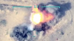 Bakanlık, Ermenistan ordusunun tank, top ve füze sistemlerine düzenlenen saldırıların havadan çekilmiş görüntülerini de paylaştı.