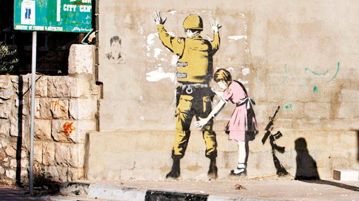 Banksy, dünyanın en büyük açık hava hapishanesi Filistin'deki duvarlara da İsrail karşıtı eserler çizmişti.