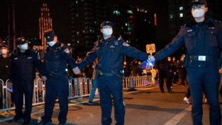 Çin polisi, protestoların yapıldığı caddeyi barikatlarla kapattı