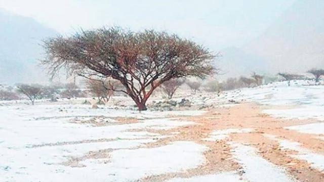 Ortadoğu'nun en sıcak ülkelerinden biri olan Birleşik Arap Emirlikleri'ne kar yağdı. Kuru havası ve çölleriyle ünlü bölgede, gök gürültüsü ve yağmurla birlikte gelen kar şaşkınlık yarattı. Bir anda bastıran dolu, Umm Al Quwain, Ras Al Khaimah, Dibba Al Fujairah emirlikleri ve ülkenin en yüksek dağı olan Jebel Jais'in bazı bölümlerini beyaza boyarken alışılmışın dışında görüntülere neden oldu.