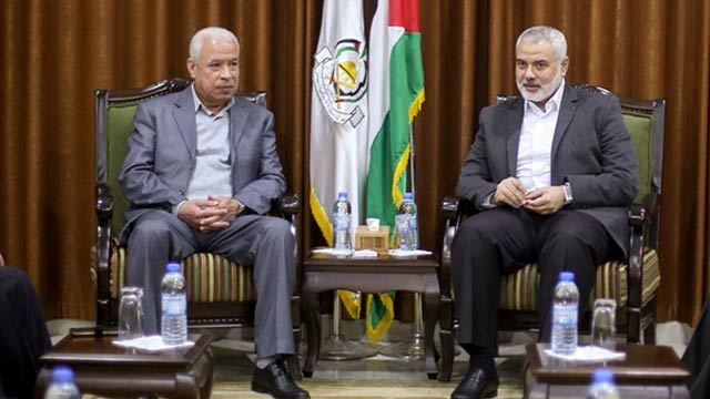 FHKC Siyasi Büro üyesi Kayıd Gul, Hamas Siyasi Büro Başkan Yardımcısı İsmail Heniyye ile gerçekleştirdiği görüşme sonrasında basın toplantısı düzenledi.