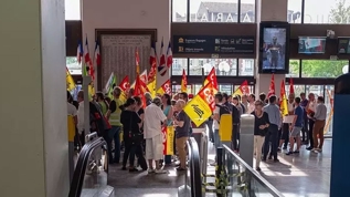 Göstericiler, söz konusu yapılandırma planı kapsamında 500 çalışanın işten çıkarılıcağını savunuyor ve buna karşı çıkıyor.