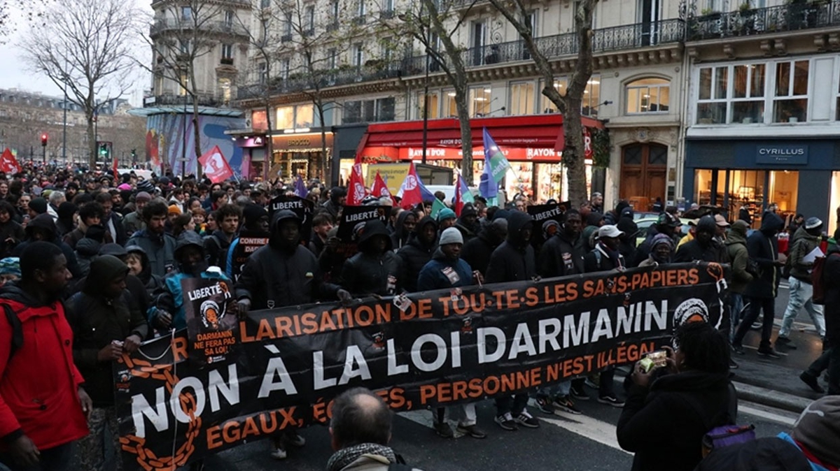Fransa'da hükümetin aşırı sağın oylarıyla Parlamentodan geçirdiği göç yasa tasarısına karşı gösteri düzenlendi.