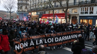 Fransa'da tartışmalı göç tasarısına karşı çıkanlar sokağa indi