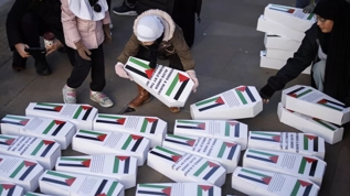 Başkentte toplanan Filistin yanlısı grup, İsrail saldırılarında öldürülen Filistinli çocukların anısına Başbakanlık Konutu'nun bulunduğu sokağın dışına 450'den fazla sembolik çocuk tabutu bırakarak, İsrail'in Gazze Şeridi'ne yönelik saldırılarını protesto etti.