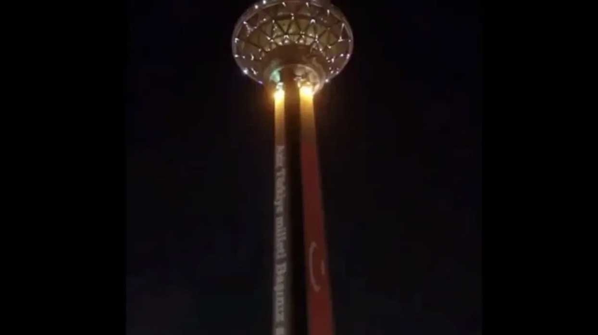 Kentin simgelerinden ve Tahran Belediyesi tarafından ışıklandırılan ülkenin en yüksek kulesine, Türkçe ve Farsça "Aziz Türkiye milleti başınız sağ olsun" mesajı yansıtıldı.