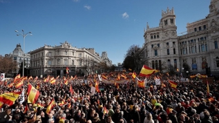 Madrid'in merkezindeki Cibeles Meydanı'nı dolduran binlerce kişi, mecliste ayrılıkçı Katalan ve Bask siyasi partilerin dışarıdan desteğiyle azınlıkta iktidarda olan sol koalisyon hükümetin politikalarını eleştirerek "(Başbakan Pedro) Sanchez istifa" sloganları attı.