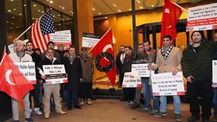 ABD'nin New York kentinde bir araya gelen Türk toplumu,Türkiye'nin Stockholm Büyükelçiliği önünde Kur'an-ı Kerim yakılmasını protesto etti.