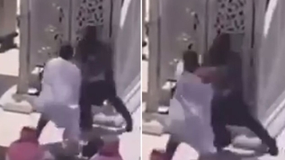 Görüntülerde, kimliği açıklanmayan saldırganın elinde bıçakla hutbeye girmeye çalıştığı görülüyor. Saldırgan, güvenlik güçleri tarafından yakalanarak gözaltına alındı.