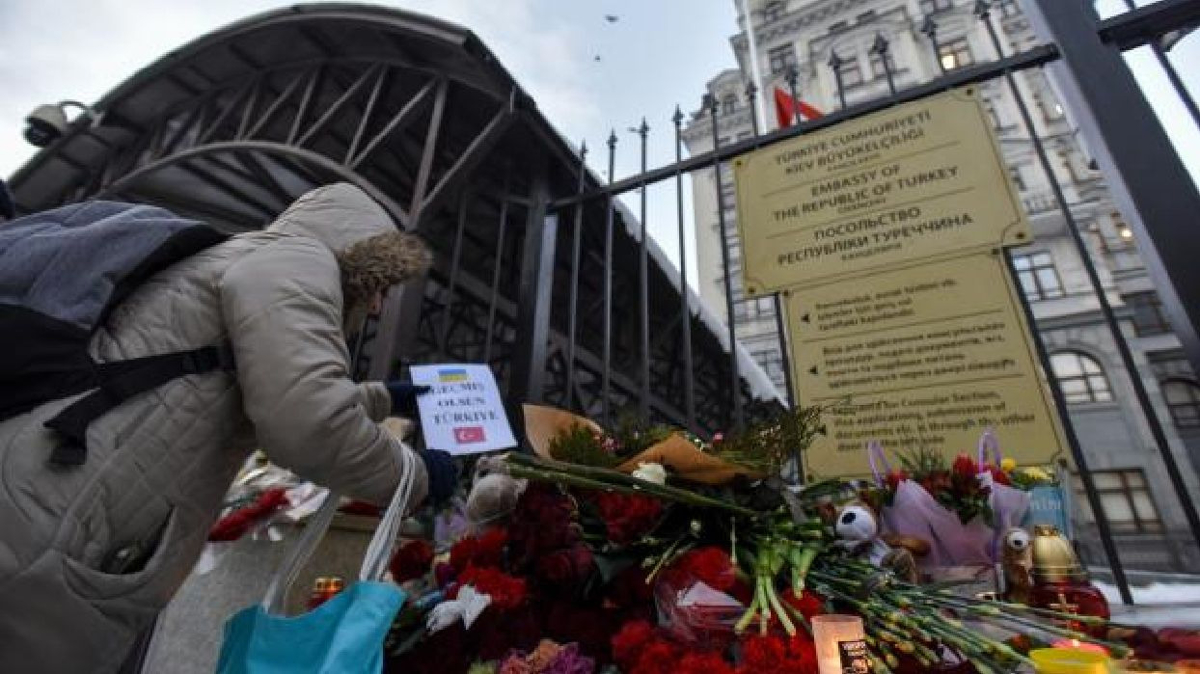 Ukrayna'nın başkenti Kiev'de yaşayanlar, merkez üssü Kahramanmaraş olan depremlerin ardından Türkiye'nin Kiev Büyükelçiliği önüne depremde hayatını kaybedenler için karanfil bıraktı.