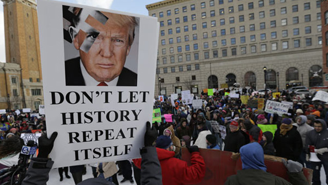 Yasak kararına karşı gösteriler de devam ediyor. Başkent Washington DC, Boston, Cleveland, Los Angeles gibi kentlerde sokaklarda ve havaalanlarında toplananlar, Trump'ı protesto etti.