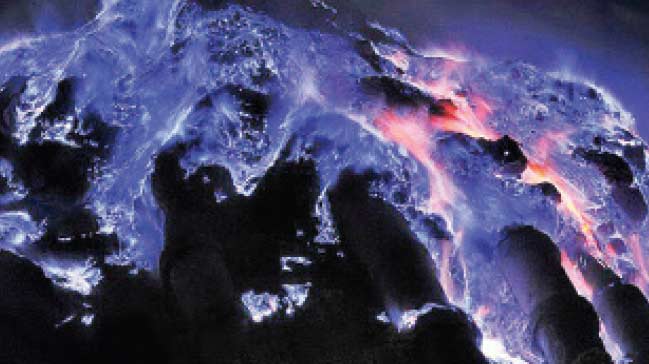 Mavi rengiyle ünlü yanardağdaki alevlerin renginin sülfürden kaynaklandığı öğrenildi.