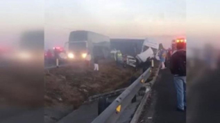 Kazaya iki yolcu otobüsü, bir tır, bir kamyon ve yedi otomobilin karıştığı açıklanırken, otoyol saatlerce çift yönlü olarak trafiğe kapatıldı.