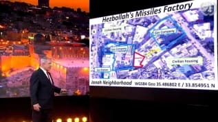 Lübnan'ın başkenti Beyrut'ta Hizbullah'a ait gizli silah deposunu gösterdiği ileri sürülen bir haritayı ekrana taşıyan Netanyahu, şöyle devam etti:
