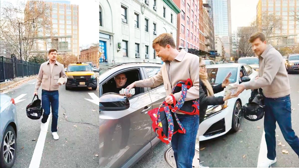 Dünyanın en çok izlenen YouTuberlarından MrBeast, kırmızı ışıkta bekleyen araçlara yanaştı; sürücülere "Bin dolar ister misin?" diye sordu. Teklifi kabul edenler nakit para aldı.