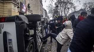 Fransa'nın Londra Büyükelçiliği önünde toplanan grup, Paris'teki silahlı saldırı nedeniyle Türkiye ve Fransa karşıtı sloganlar attı.
