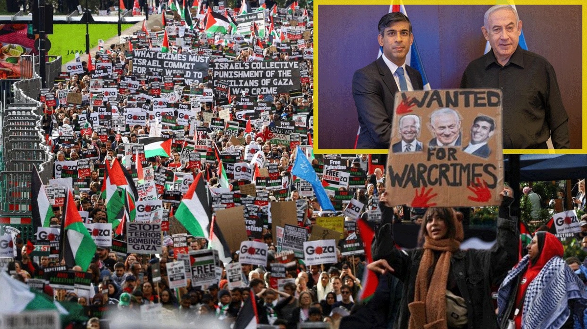 Sunak İsrail'in yanında, Londra'da on binler Filistin için sokaklarda!