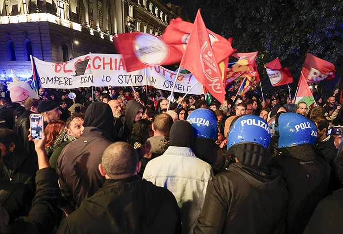İtalya'nın başkenti Roma'da, Filistin'e destek amacıyla toplanan göstericilerin yürüyüş yapmak istemesi üzerine, güvenlik güçleri kalabalığa cop ve tazyikli suyla müdahale etti.