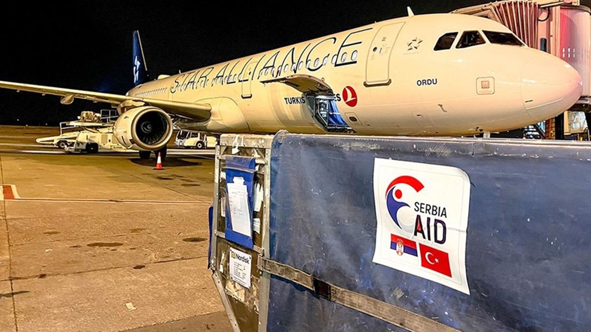 Sırbistan hükümetince hazırlanan ayni yardımlar, Türk Hava Yolları (THY) kargo uçağıyla, başkent Belgrad'daki Nikola Tesla Havalimanı'ndan, Türkiye'nin Belgrad Büyükelçisi Hami Aksoy ve eşi Canan Parmaksızoğlu Aksoy'un katılımıyla Türkiye'ye gönderildi.