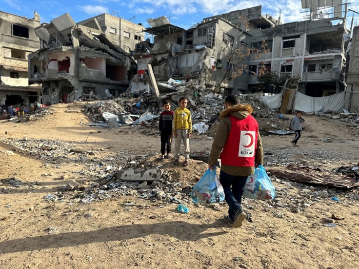 İlk günden bu yana başta gıda olmak üzere Gazze'ye insani yardım desteğini sürdüren Kızılay, Filistin Kızılayı ile de dayanışma halinde çalışıyor.