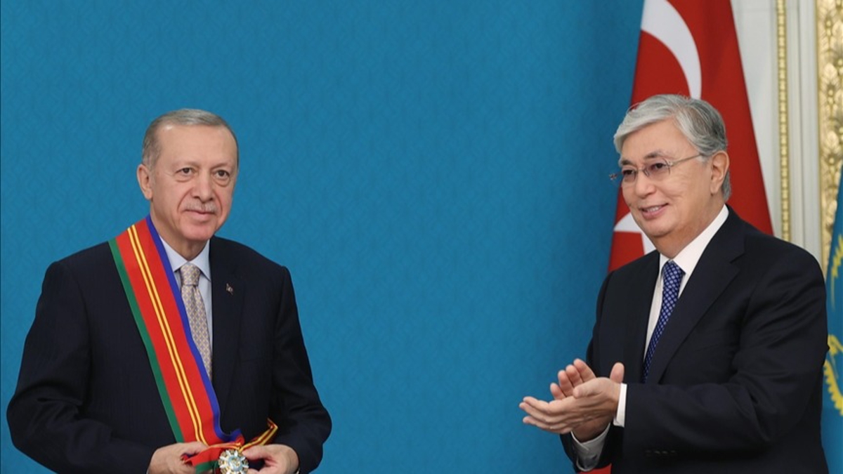 Kazakistan'ın başkenti Astana'daki Akorda Cumhurbaşkanlığı Sarayı'nda Cumhurbaşkanı Erdoğan ve Kazakistan Cumhurbaşkanı Tokayev başkanlığında dün yapılan görüşmelerin ardından Türkiye-Kazakistan ilişkilerinin tesisinin 30'uncu yılı dolayısıyla ortak bildiri yayımlandı.