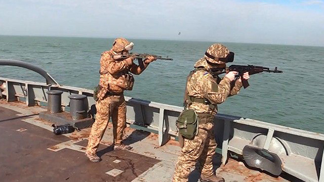 Ukrayna Donanması, Azak Denizi'nde, Korvet tipi hafif zırhlı savaş gemileri ile tatbikat gerçekleştirildi. Tatbikatta senaryo gereği Kerç Boğazı'na doğru ilerleyen savaş gemisine, 3 Rus gemisi yaklaştı. Ukrayna askerleri ise kendilerine tehdit oluşturan 3 Rus gemisine karşı el bombaları fırlattı. Bombaların fırlatılmasıyla birlikte uzaklaşan Rus zırhlılarına karşı bu kez Ukraynalı keskin nişancılar ateş etti.
