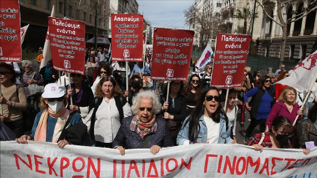 Atina'daki Sintagma Meydanı'nda toplanan binerce kişi, Yunanistan Demir Yolları Örgütünün (OSE) Atina'daki ofisine doğru yürüdü.