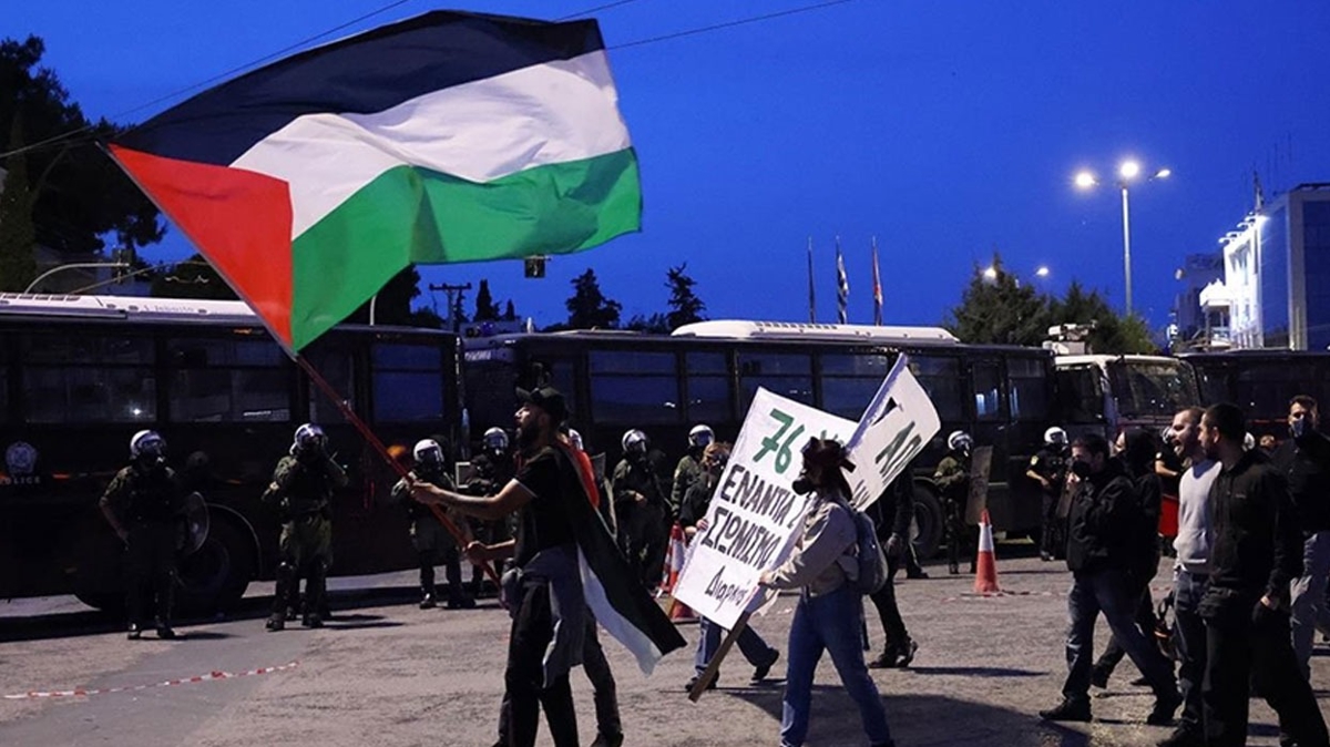 Yunanistan'ın başkenti Atina'da Filistinlilerin zorunlu göçe tabi tutulduğu "Nekbe"nin (Büyük Felaket) 76. yılı dolayısıyla ABD'nin ve İsrail'in Atina büyükelçiliklerine yürüyüş düzenlendi.