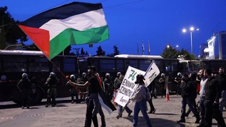 "Nehirden denize özgür Filistin" sloganları atılan yürüyüşün son bulduğu İsrail'in Atina Büyükelçiliği önünde barikat kuran polis ile eylemciler arasında arbede yaşandı.