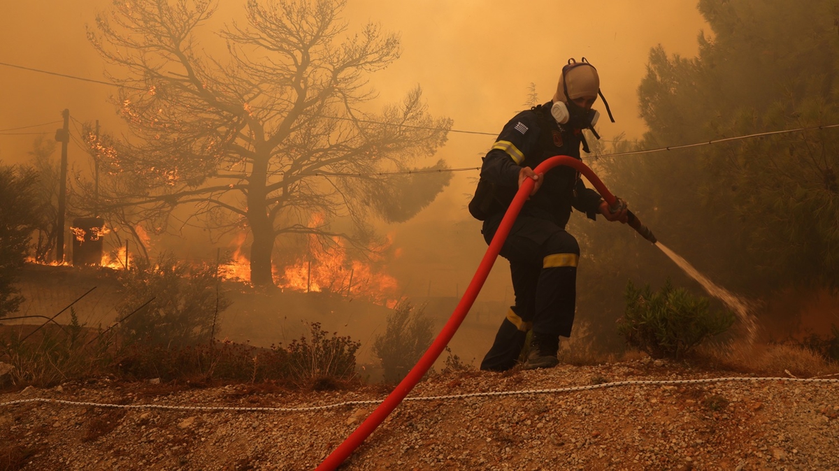 Yunanistan'da yangınlarla mücadelede itfaiye teşkilatına, polis, asker, sahil güvenlik ve gönüllüler de destek verdi.