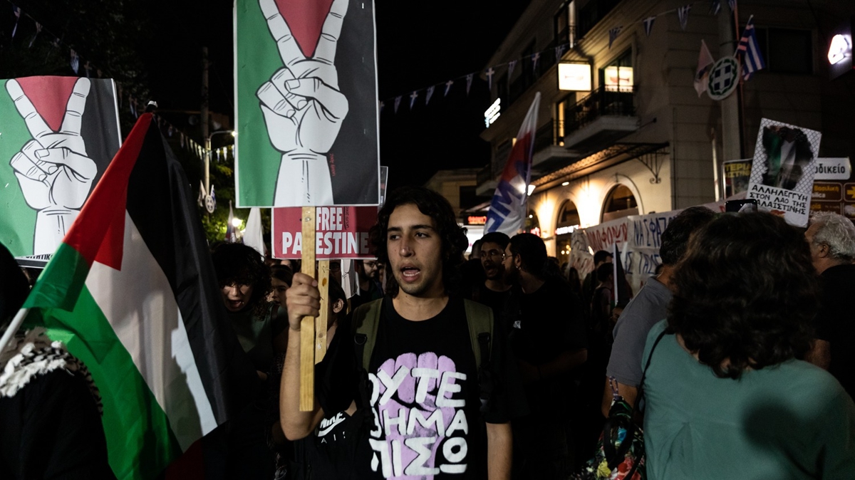 Eylemciler İsrail-Filistin çatışmasında ABD, NATO ve Avrupa Birliği'nin (AB) tutumunu da eleştirerek, Yunanistan'ın bu çatışmadan uzak kalmasını talep etti.