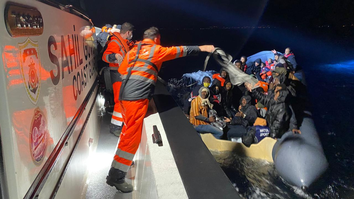 İzmir açıklarında, Yunanistan unsurlarınca Türk kara sularına itilen 92 düzensiz göçmen karaya çıkarıldı, 32 düzensiz göçmen yakalandı.