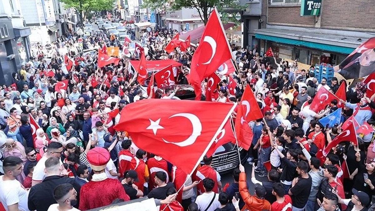 Almanya'da yaşayan Türk vatandaşları, Berlin'in Kreuzberg semti ve Kurfürstendamm Caddesi'nde toplanarak seçim başarısı nedeniyle Cumhurbaşkanı Erdoğan'ı kutladı.