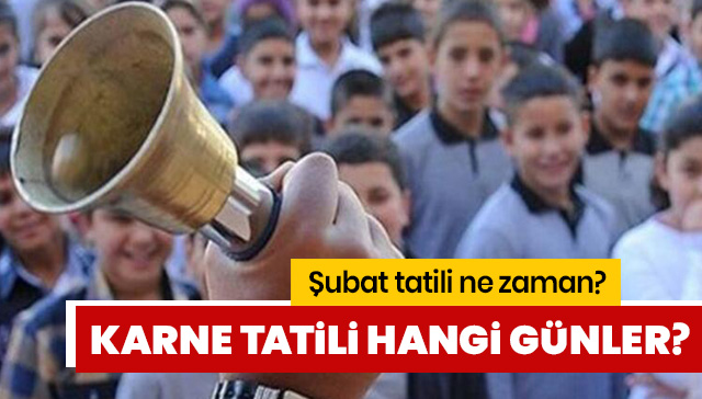 Şubat tatili olarak bilinen 15 günlük karne tatili bu sene 20 Ocak ile 31 Ocak tarihleri arasında olacak. Öğrenciler ilk dönem karnesini 17 Ocak Cuma günü karneyi alacak. Böylece 18-19 Ocak günleri olan hafta sonları da 15 günlük tatillerine dahil olacak. On beş günlük tatil 2 Şubat akşamı bitecek ve öğrenciler 3 Şubat Pazartesi günü ikinci döneme başlayacak.