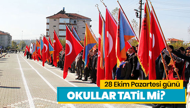 Bugün okullar tatil mi? 28 Ekim Pazartesi okullar yarım gün mü? sorularının yanıtı arama motorlarında yoğun olarak araştırılıyor. 29 Ekim Cumhuriyet Bayramı'nda okullar eğitime 1 gün ara veriyor. Bu sene Cumhuriyet Bayramı'nın 96. yılı kutlanıyor. Pazartesi günü ile birlikte 4 gün boyunca tatil yapmak isteyen öğrenciler yarın okulların tatil edilmesini istiyor. Binlerce öğrenci 29 Ekim Salı günü öncesi Pazartesi günü okula gidip gitmeyeceğini öğrenmek istiyor. Öğrenici ve velileri tarafından merak edilen "Yarın okullar tatil mi? 28 Ekim Pazartesi okullar tatil mi?" sorularının yanıtı haberimizde yer alıyor.
