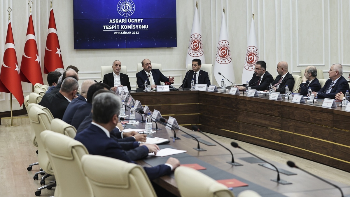 Çalışma ve Sosyal Güvenlik Bakanı Vedat Bilgin başkanlığında bakanlıkta yapılan dünkü toplantıya Türkiye İşçi Sendikaları Konfederasyonu (Türk-İş) Genel Başkanı Ergün Atalay ve Türkiye İşveren Sendikaları Konfederasyonu (TİSK) Yönetim Kurulu Başkanı Özgür Burak Akkol da katıldı. Toplantının açılışında konuşan Bakan Bilgin "Biz çalışanlarımızı, emekçilerimizi korumak, sosyal devlet tedbirlerini devreye sokmak mecburiyetindeyiz. Çalışanların enflasyonun tahribatı karşısında korunması bizim görevimizdir. Bunu yapmak zorundayız. Bu konuda da elimizdeki en önemli araç, asgari ücretin yeniden belirlenmesidir. Asgari ücret sadece asgari ücret kapsamında olan 6,5 milyona yakın işçimizle sınırlı değildir, onların üzerindeki ücret gruplarının da ücretlerinde pozitif etki yapacak bir unsurdur" dedi.