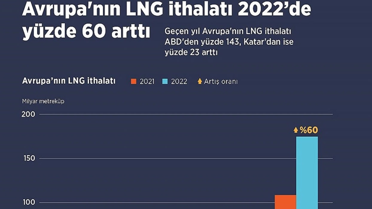 Araştırma kuruluşu Enerji Ekonomisi ve Finansal Analiz Enstitüsü (IEEFA), Avrupa'nın sıvılaştırılmış doğal gaz (LNG) ithalatının 2022'de önceki yıla göre yüzde 60 arttığını bildirdi.