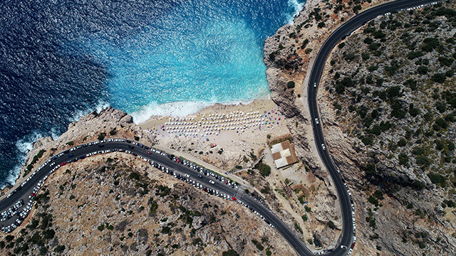 Antalya'nın gözde ilçelerinden Kaş'taki dünyaca ünlü Kaputaş Plajı, suyunun benzersiz turkuaz rengiyle her gün yüzlerce yerli ve yabancı turisti ağırlıyor.